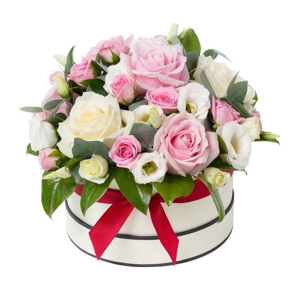 A stunning Hat Box, over-flowing with a stunning combination of Blush Pink and Cream Roses.